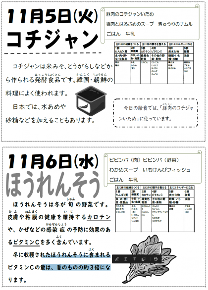 本日の給食です。【11月5日(火)】