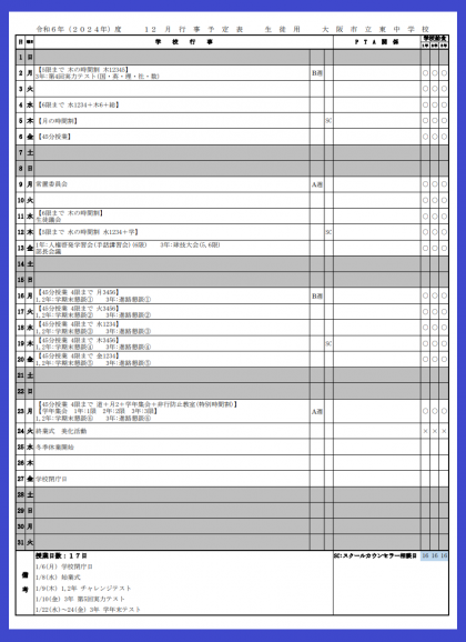 なお、12月27日(金)と1月6日(月)は学校閉庁日とさせていただきます。