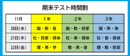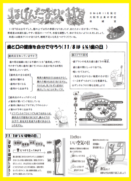 ほけんだより(11月号)を掲載します。体調を万全に整えて2学期末テストに挑みましょう!!