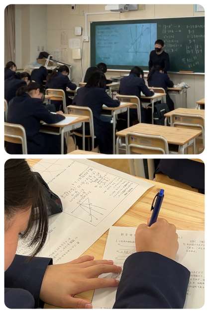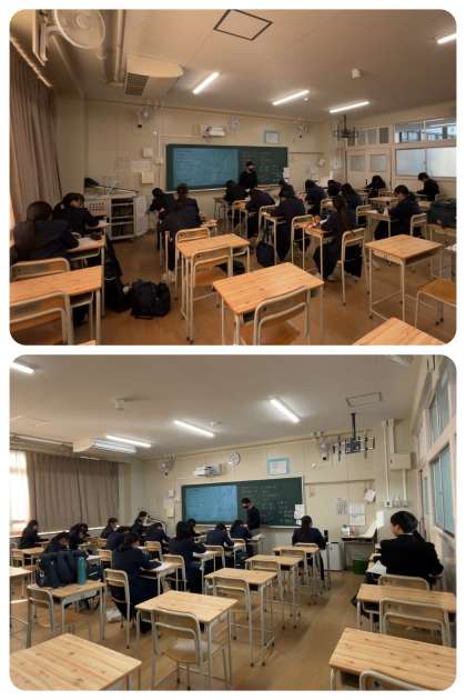 また、3年生の教室では、数学のセミナーが開催されていました。テスト前日、『まだできることはある』と自主的に参加した生徒たちが、学習に集中して取り組んでいました。ここでの学習が、家庭学習につながり、成果につながりますように。