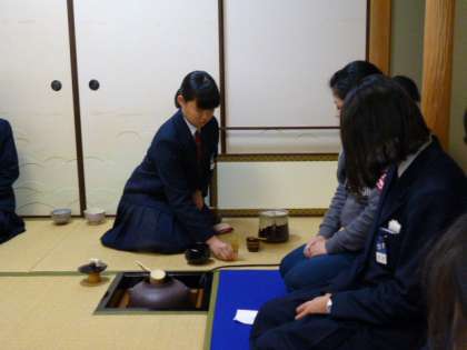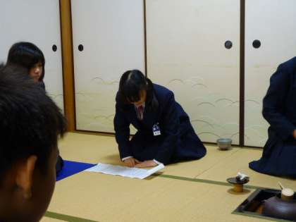 3年生が半東を務め、2年3年生がお点前を披露しました。