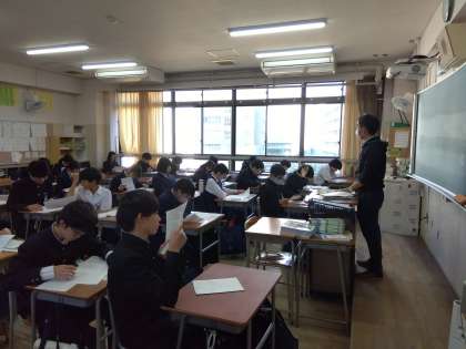 各教科、20日〜22日実施の期末テストの返却、解説をしています。