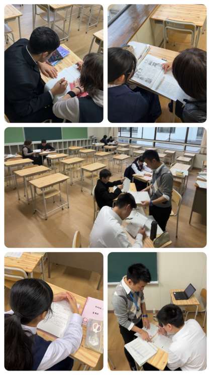 日本に来て、日の浅い生徒は、北区や阿倍野区まで電車で移動して、日本語を習得しつつ、学習を進めています。今日は、先生にお越しいただき、また、本校のJSLや学びサポーターの皆さまによる授業を学習室で進めています。