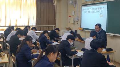 今日の5時間目、3年生は先の記事にある、校長面談のグループと、総合的読解力の学習に取り組むところもありました。ポストZ世代であるα世代にふさわしく、メタバース社会についてのテーマでした。