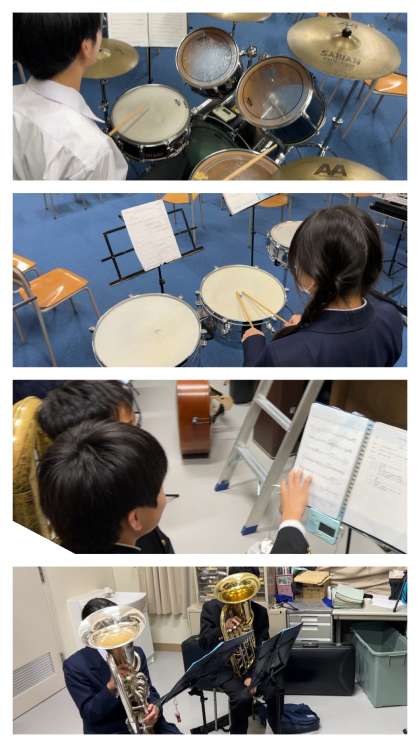 吹奏楽部は、12月8日(日)に行われる地域での演奏会に向けて、パート毎に練習を重ねています。1・2年生での初めてのステージです。