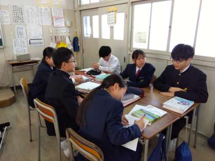 1年国語:「竹取物語」の暗唱に取り組んでいます。班ごとに教え合いながら、覚えられているか確認しました。