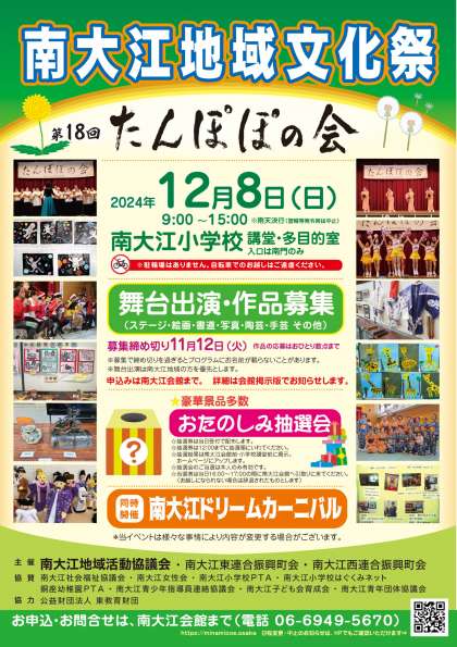 第18回南大江地域文化祭「たんぽぽの会」が南大江小学校で開催されます。