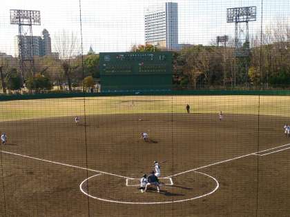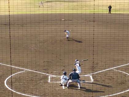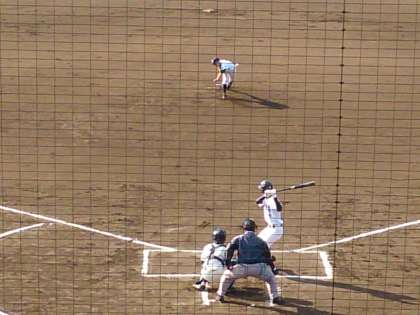 美津島中学校の先攻です。バッテリーの攻め、内外野手堅実な守備で引き締まった試合です。