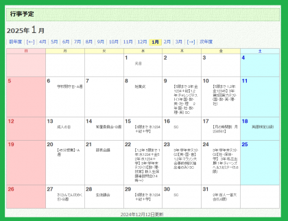令和7年1月の行事予定表を再掲します。(こちらをクリックするとご覧いただけます)