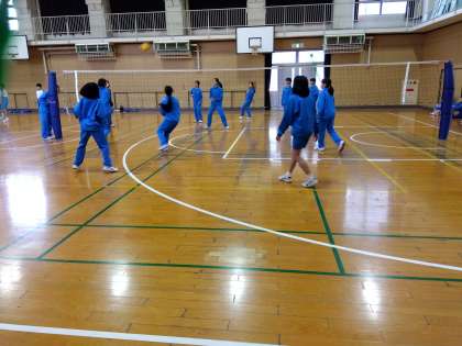 1年体育:男女ともバレーボールのゲームをしました。楽しく、真剣に取り組んでいます。