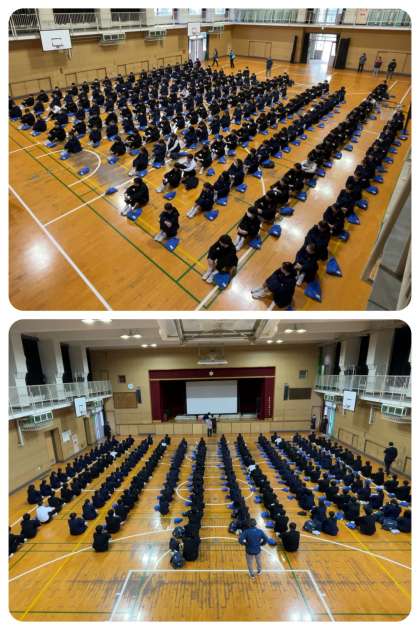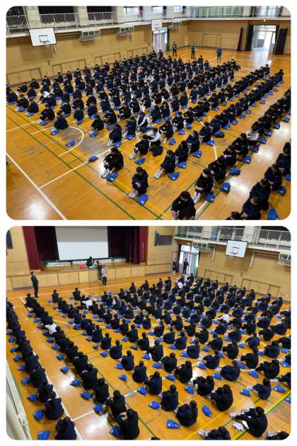 今日は進路指導担当の先生からのお話と、保健体育担当の先生からのお話です。生徒たちの真剣に話を聞く姿がとても印象的でした。
