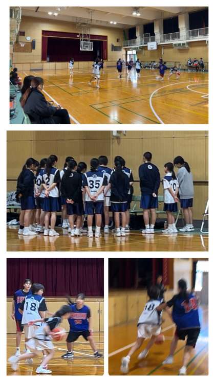 女子バスケットボール部が、体育館で練習試合です。大会では、出場機会の少ない選手にも、今日は出番があり、練習の成果を発揮しようとしています。フリースローの精度も上がったように思います。また、ライン際ぎりぎりまで、ボールを追いかける姿もあり、今後の成長を期待させる場面でした。