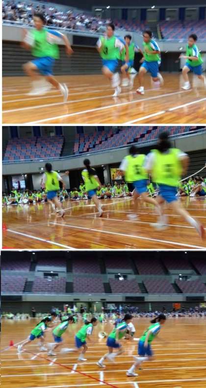 体育大会の開会式とスタートダッシュ・全力疾走の様子です。