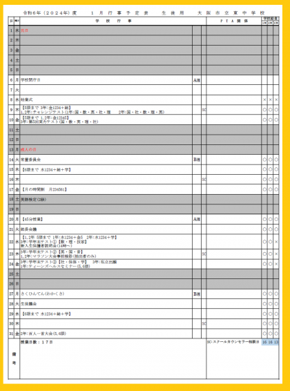 令和7年1月の行事予定表を再掲します。(こちらをクリックするとご覧いただけます)