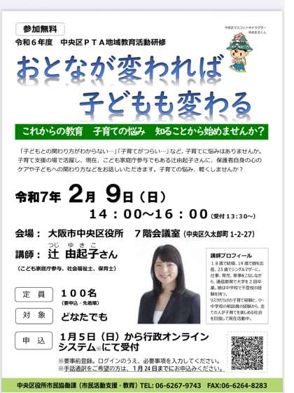【区PTA】中央区PTA地域教育活動研修のお知らせ