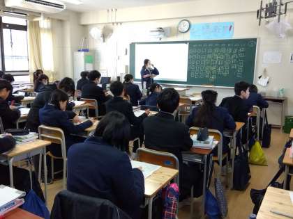 1年国語:漢文の学習をしています。返り点がついた文をどう読むかをみんなで確認しました。