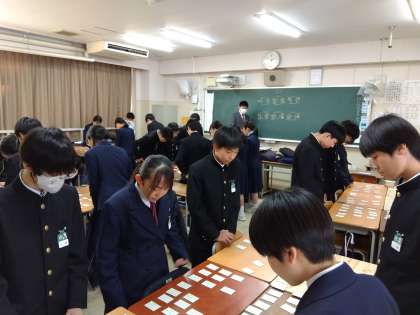 2年国語:百人一首に取り組みました。真剣に集中して取り組みました。