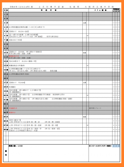 新入生保護者説明会を開催します。〜2月行事予定表を掲載します。〜