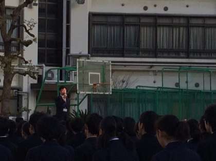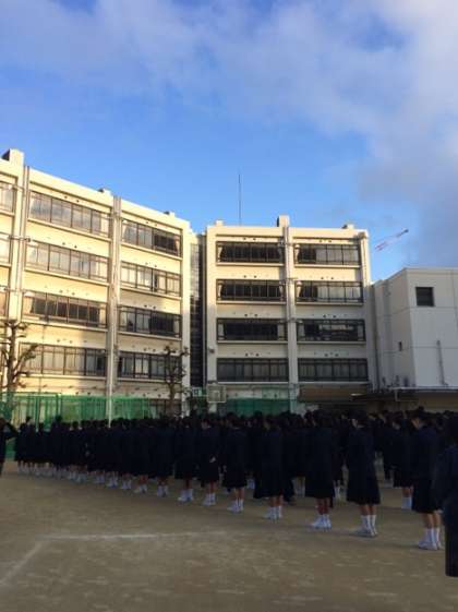 三学期最初の全校集会が行われました。まず、3B野球部駅伝大会の表彰があり、校長先生からは成人の日の話から、意志を持って取り組むことの大切さについて講話がありました。また、西垣先生からは日頃から早めに行動することで、気持ちを落ち着かせることが大事だとお話がありました。