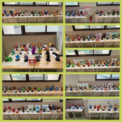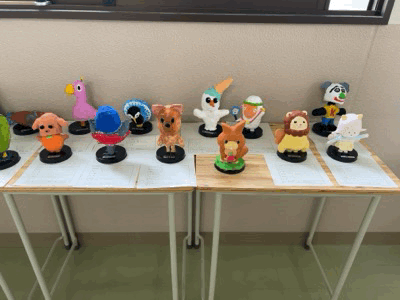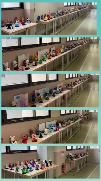 美術室前の約30mの廊下いっぱいに、個性豊かな2年生の作品を展示しています。