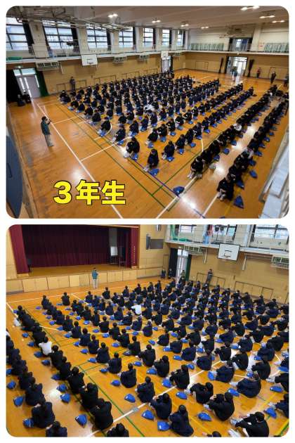 毎週水曜日に1年生、木曜日は2年生が、金曜日は3年生が朝の集会を行ってきました。明日から2月。今の学年での朝の集会も数少なくなりました。今の学年としてのまとめの2ヶ月。気持ちを揃えて卒業式、修了式を迎え、新しいステージに進みましょう。