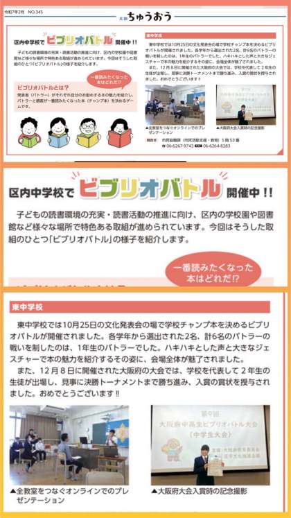 ビブリオバトルの取組が広報『ちゅうおう』に取り上げていただきました!!