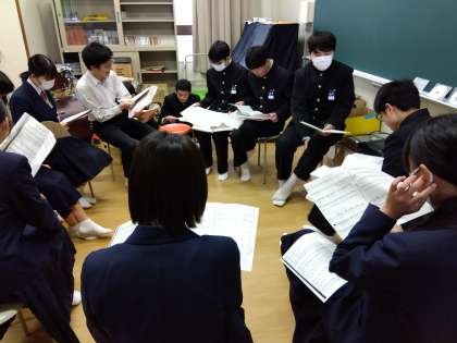 3年音楽:卒業式の合唱曲「旅立ちの日に」の練習を始めています。3つのパートに分かれて練習に取り組みました。