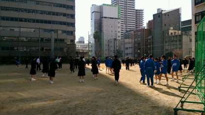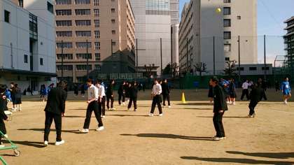 昨日からぐっと冷え込み冬本番の寒さが続いていますが、昼休み時間の運動場には太陽の光が差し込み、少し寒さも和らいでいるのか!?東中生は元気に、楽しそうに休み時間を過ごしています。インフルエンザ対策や風邪の予防が必要ですが、こうして身体を動かすことも大切ですね。しかし、油断せずに、教室に帰る前には、手洗い、うがい、汗をしっかり拭きましょう!