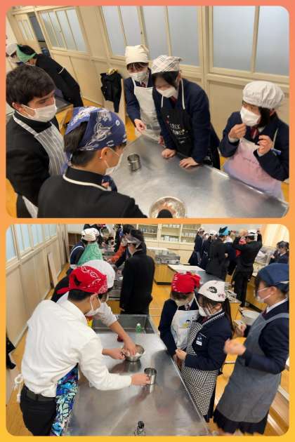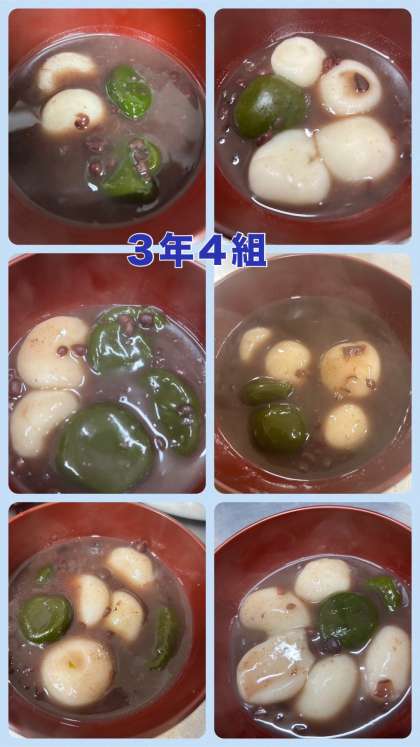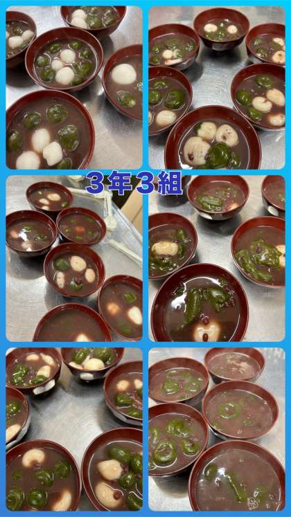 3年生が調理実習に取り組みました。班で仲良く協力して、美味しそうな白玉入りのぜんざいが出来上がりました。
