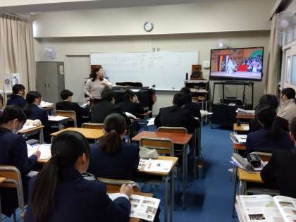 2年音楽:歌舞伎の音楽のきまりや楽器を学習した後、視聴覚教材を使って鑑賞しました。