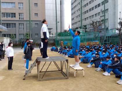 開会式では、体育委員の司会進行で、諸注意・選手宣誓に続いて声を掛け合ってのラジオ体操を行いました。