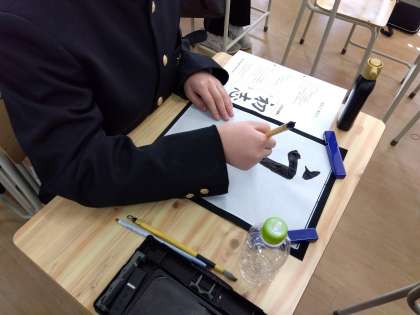 2年国語:書写に取り組んでいます。黙想して心を整えた後、静かに取り組みました。課題は「初志」です。