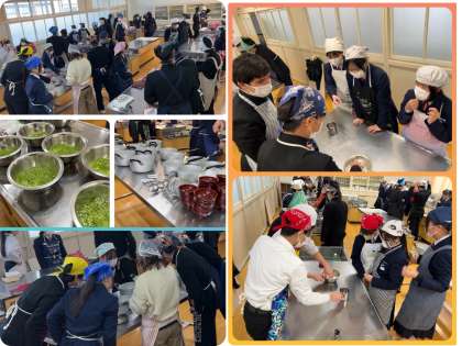 3年生は、家庭科の授業で6クラスの調理実習を行いました。入試を控え緊張した日々が続きますが、どのクラスも協力して、仲良く実習に取り組むことができました。