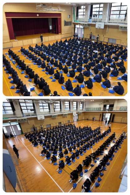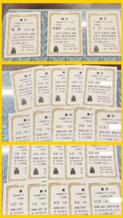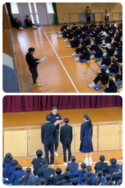 1年生が学年集会で「マラソン大会」の表彰式を行いました。