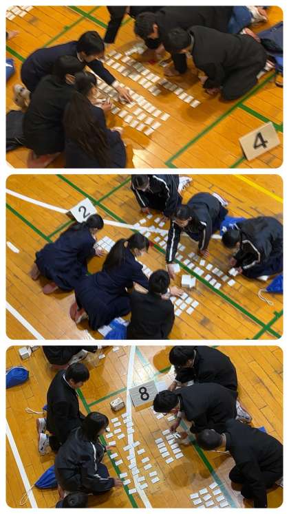 練習の成果でしょう。上の句が読み上げらけると、素早くかるたを取る生徒がたくさんいます。