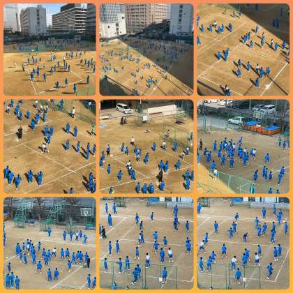 2年生は、柔らかな陽射しが心地良いグランドで球技大会です。生徒が主体となって行事が進むようすに、生徒たちの成長を感じます。