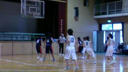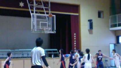 女子バスケットボール部の戦いが始まりました。序盤から、積極的に攻め、ゴールがどんどん決まります!