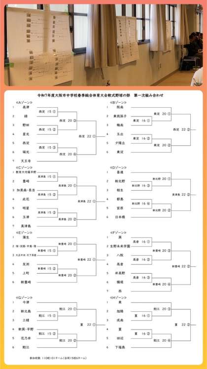 大阪市中学校体育連盟軟式野球部春季総体抽選会が新校舎6階の多目的室で行われました。110校101チームの参加、6月7日南港中央野球場で行われる決勝戦でチャンピオンをめざします。