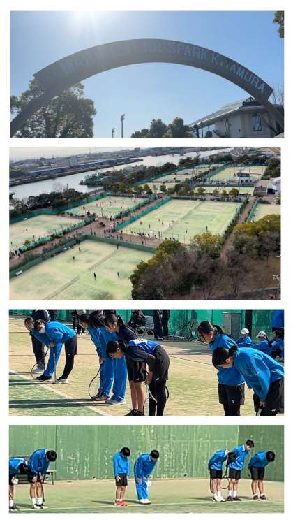 男女ソフトテニス部が、大阪市中学生ソフトテニス連盟杯に参加しています。会場は、マリンテニスパークをお借りし、22面ものコートを使った大会です。