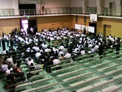 生徒たちは、200人ほどの先生方に囲まれて少し緊張しながらも、積極的に授業に参加している様子が印象的でした。