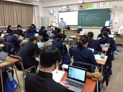 3年数学:資料の活用について学習しています。ひとりずつ乱数表を用いて数値を出し、その数値をもとに問題に取り組みました。