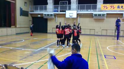 コートが変わった第二セットでは、序盤から東中のペースで試合が進みましたが、終盤になって玉造チームの粘り強い守りと力強い攻めに苦しみました。しかしながら、サーブで崩し、チャンスボールをスパイクで打ち切って第二セットも連取し、一戦目を勝利で終えました。
