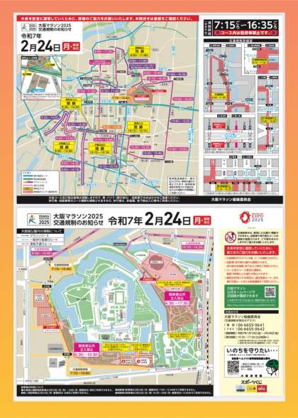 -交通規制中は、車両による通行・横断ができません。自転車や歩行者もコースの横断が制限されます。