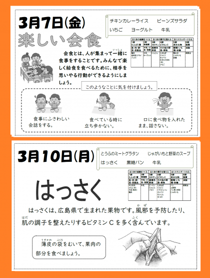 3年生の給食も残り3回となりました。小学校から9年間いただきました。給食に携わっていただいている方々に感謝の気持ちをもって、しっかりといただきましょう。