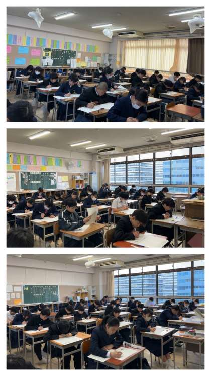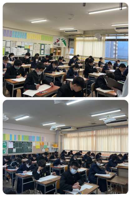 各教室では、学習してきた成果を発揮すべく、生徒たちがテスト問題に向き合っています。