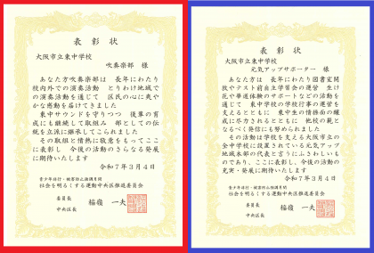 祝 中央区長表彰 吹奏楽部・元気アップ!!