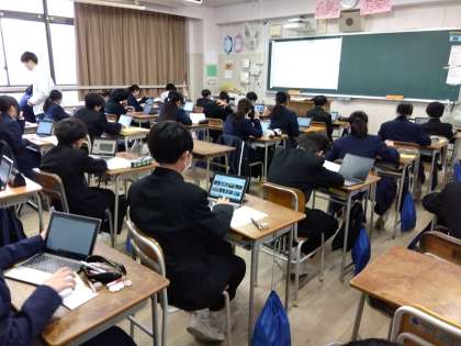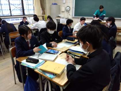 1年英語:スピーチの原稿の作成に取り組んでいます。