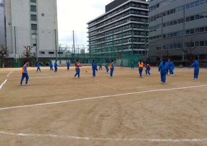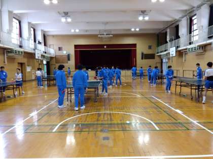 3年体育:女子は運動場でフリスビー、男子は体育館で卓球をしました。