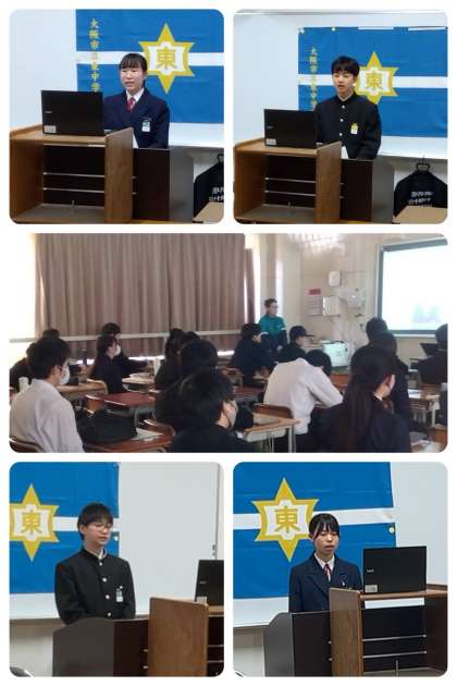 校長先生の挨拶に続いて、学年代表生徒からのスピーチ、記念品目録の読み上げ。その後、各教室で事前に準備したビデオを鑑賞しました。その素晴らしい出来栄えに、生徒たちは集中して鑑賞していました。