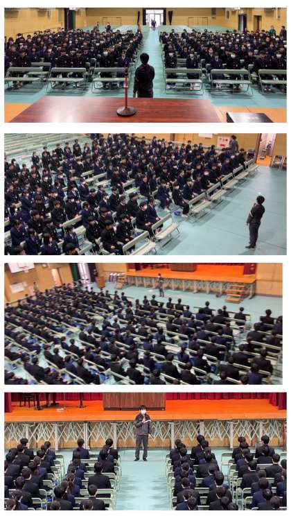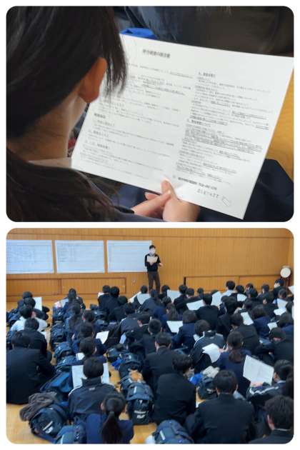 3年生の1・2時間目は、各クラスでの最後の授業となりました。続く、3・4時間目は、卒業式に向けての歌の練習などがあり、合間には先生方からのメッセージをいただきました。そして、最後の給食。午後は、明日、受験する生徒だけが集合して、進路担当の先生から諸注意がありました。